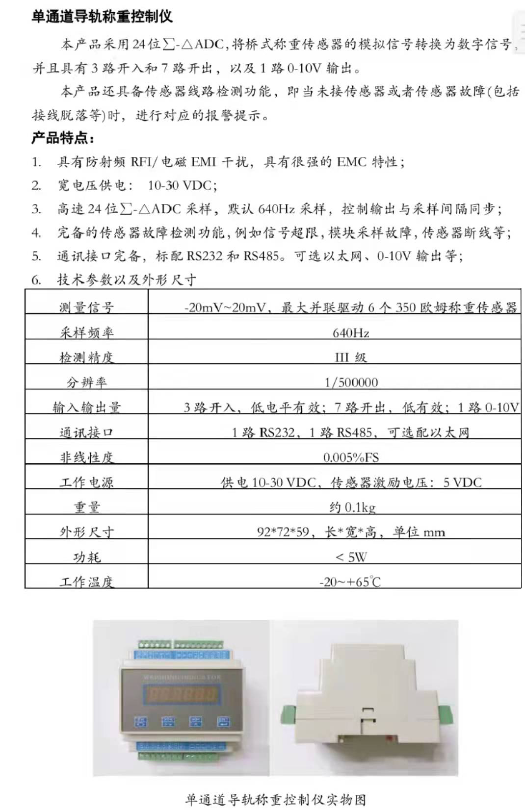 單通道導軌稱重控制儀
