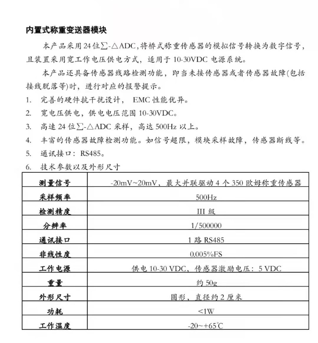 內置式稱重變送器模塊