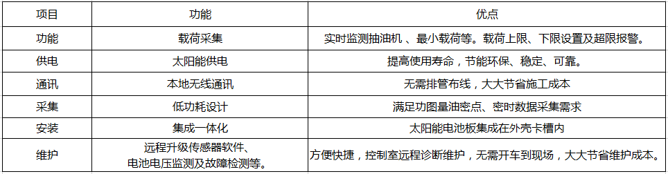CLF-WX01無線太陽能抽油機傳感器是蚌埠力業傳感器公司為某研究所油井無線系統而開發制作的一款集光電轉化、微功耗無線通訊、力敏傳感器、低功耗單片機等技術于一體得新型數字節能環保產品,目前已在全國各油田推廣應用,以其高精度、安裝簡單、維護方便、可靠性高、環保耐用等特點贏得用戶認可。