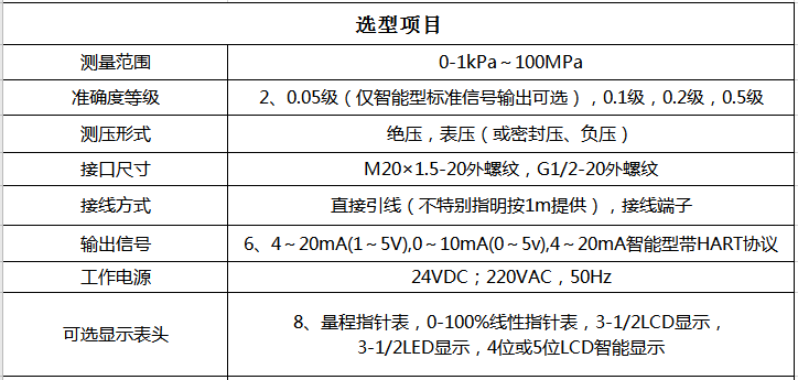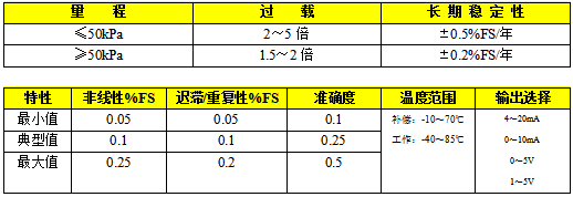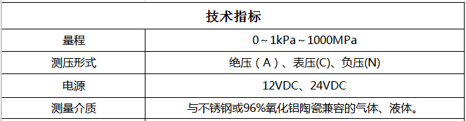 1.采用進口原裝陶瓷壓阻芯