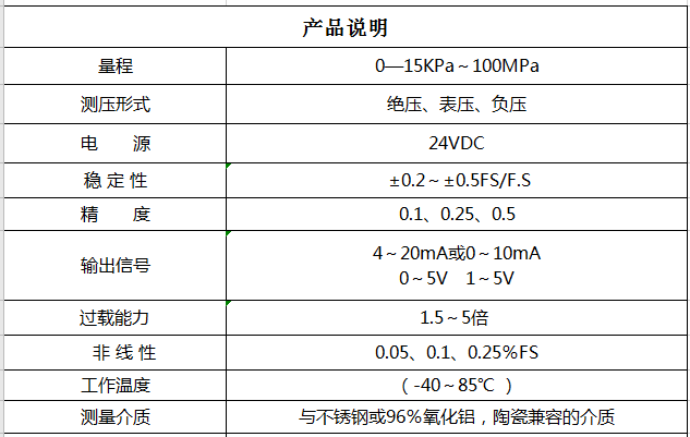 PT355型無腔變送器采用進口高精度高穩定性芯片和優良的組裝技術,經精密的溫度補償,將芯體置于全不銹鋼殼體內,結構精巧;廣泛應用于航空航天、石油、化工、治金、電力、煤氣、氣象等領域;既可以進行表壓或絕壓的測量,又可以測負壓、真空度等。