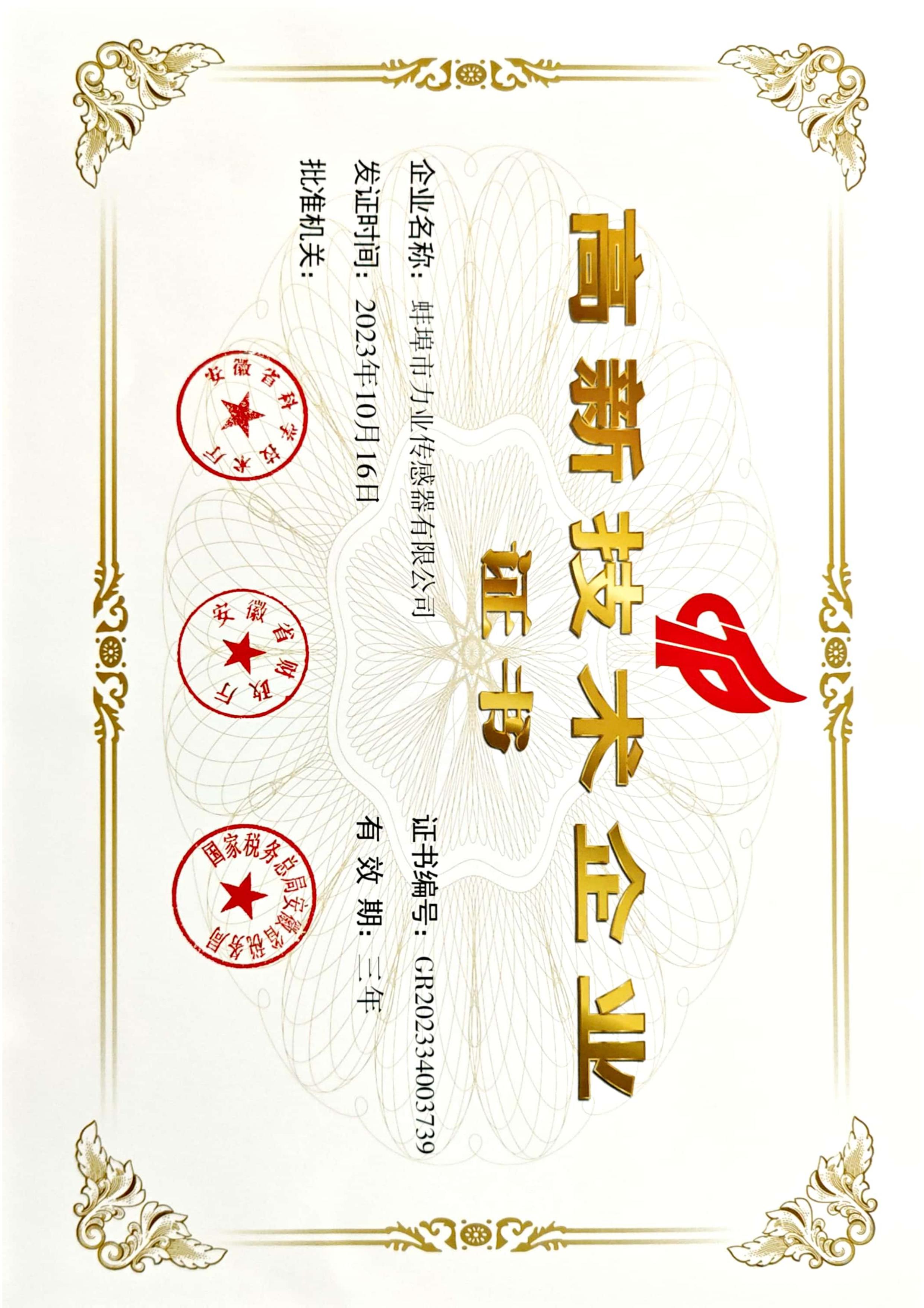 高新技術企業證書